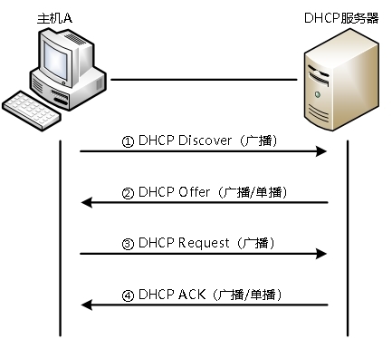 从图示中我们可以直观明了地看出DHCP地工作原理,一般为四个阶段: