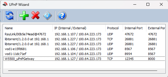 打开UPnP Wizard软件,点击刷新后可以看到我们添加的端口映射表。
