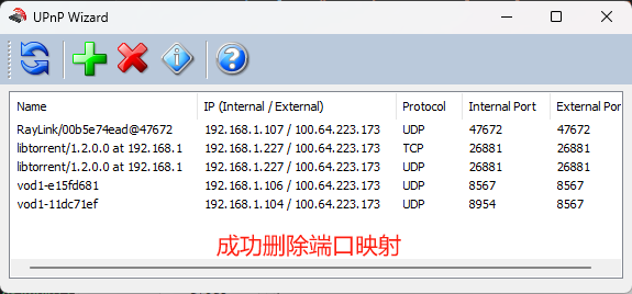 }步骤8:删除一个UPnP端口映射表