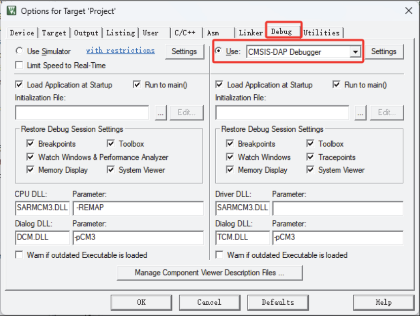 点击 Settings 按钮后,进入 CMSIS-DAP Debugger 配置界面。
