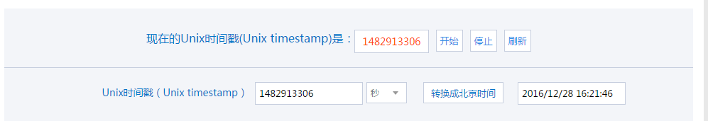 在网络上搜索“UNIX时间戳”可找到一些网站提供当前实时的UNIX时间戳,见下图某网站显示的实时UNIX时间戳: