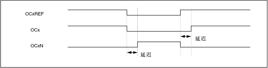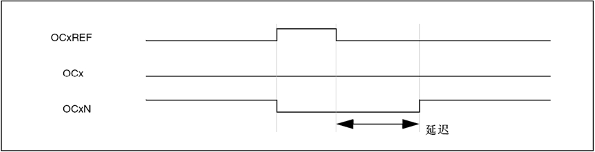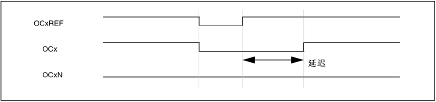 将输出比较模式(TIMx_CCMRx 寄存器中的 OCxM 位)和输出极性(TIMx_CCER 寄存器中的 CCxP位)定义的值输出到对应的引脚上。在比较匹配时,输出引脚可以保持它的电平(OCxM=000)、被设置成有效电平(OCxM=001)、被设置成无效电平(OCxM=010)或进行翻转(OCxM=011)。