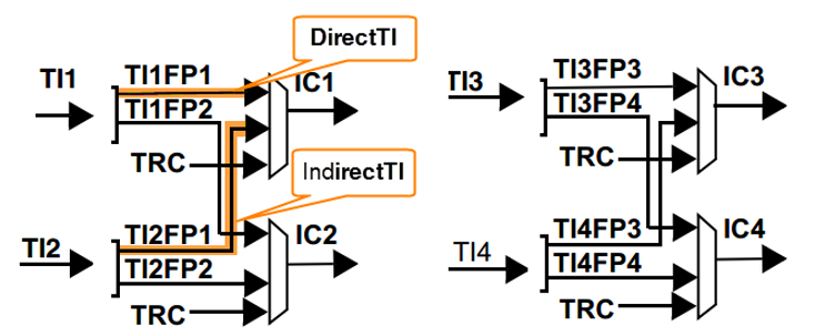 两个 ICx 信号被映射至同一个 TIx 输入。