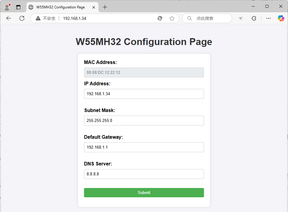 接着我们打开浏览器,输入W55MH32的IP地址进行访问。