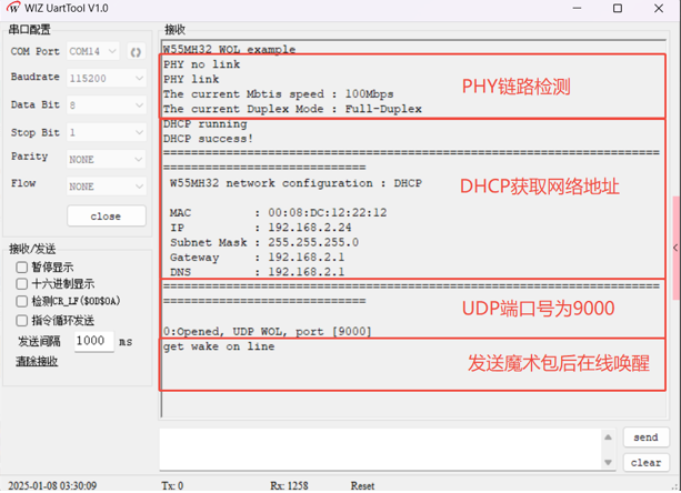 接下来,我们在 W55MH32上实现WOL远程唤醒测试。