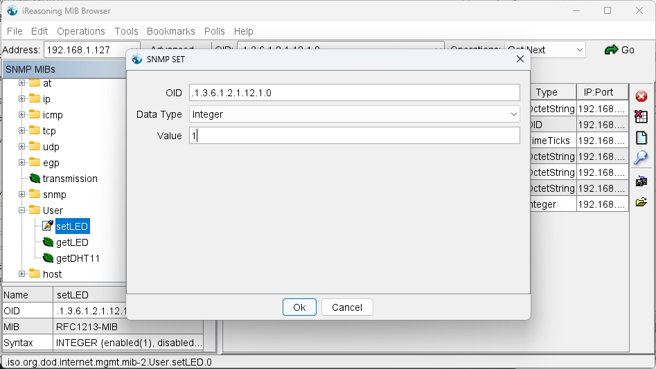 setLED OBJECT-TYPE //添加一个新叶子节点,命名为 setLED