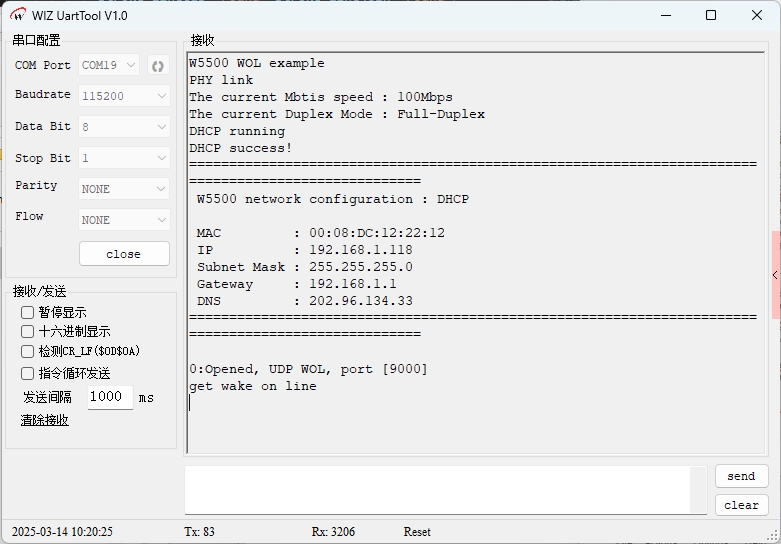 接下来,我们在 W5500上实现WOL远程唤醒测试。