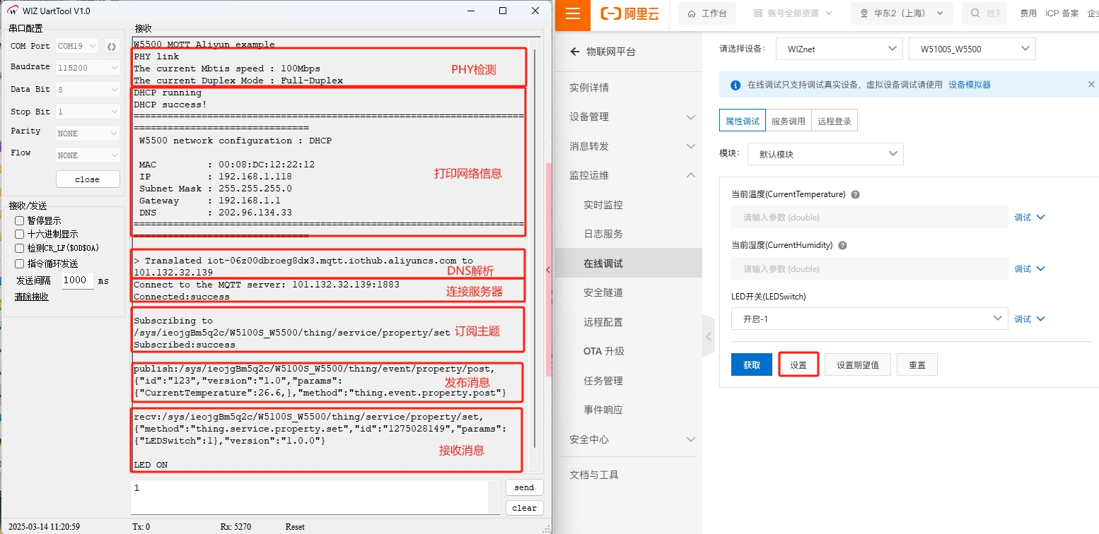 接下来,我们看看在W5500上如何实现MQTT连接阿里云,并进行订阅、发布消息以及接收消息处理。