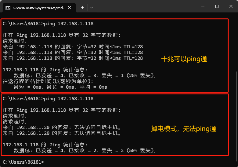 printf("PHY is in power down state and cannot be ping reply.\r\n");