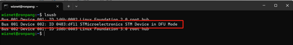 * 此命令将绑定的USB设备附加到WSL环境。- 通过检查WSL中的USB设备来验证连接: