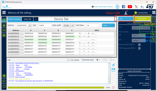 d. 开发板进入DFU模式 - 使用STM32CubeProgrammer进行软件验证: