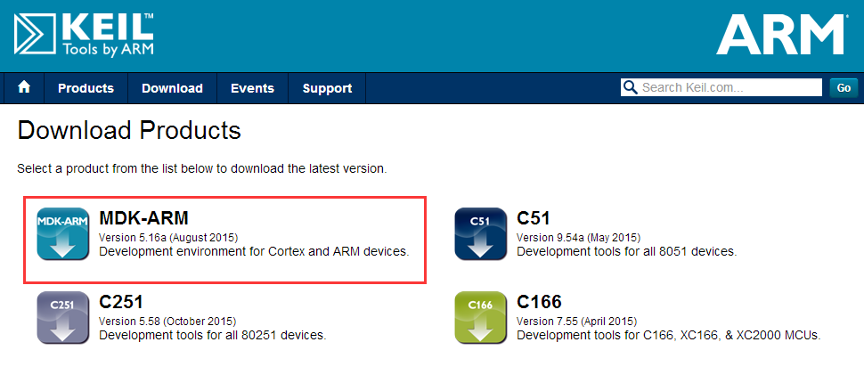 到KEIL的官网下载:https://www.keil.com/download/product/。建议使用最新或者靠近最新版本: