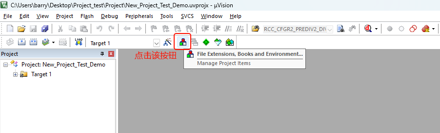 工程目标选项又称魔术棒:即对工程目标的配置,如芯片设备选择、C/C++选项、仿真配置等等。