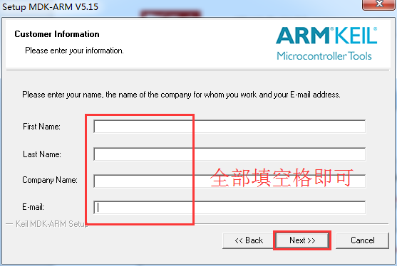 填写用户信息,全部填空格(键盘的space键)即可,Next: