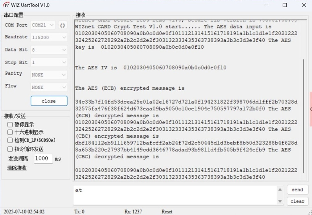 callAes.u16Opt = WIZ_AES_OPT_BLK_CBC | WIZ_AES_OPT_MODE_DECRYPT | WIZ_AES_OPT_KEY_128;步骤 3:主代码