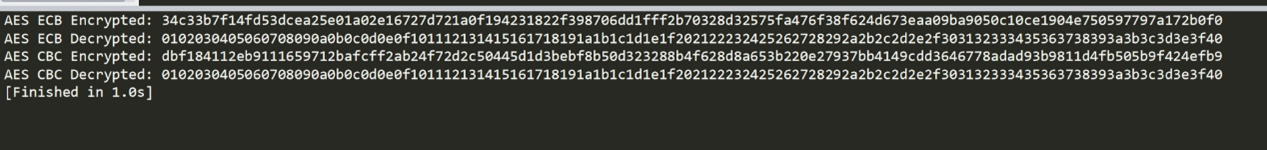 0102030405060708090a0b0c0d0e0f101112131415161718191a1b1c1d1e1f202122232425262728292a2b2c2d2e2f303132333435363738393a3b3c3d3e3f40加密输出消息 (ECB):