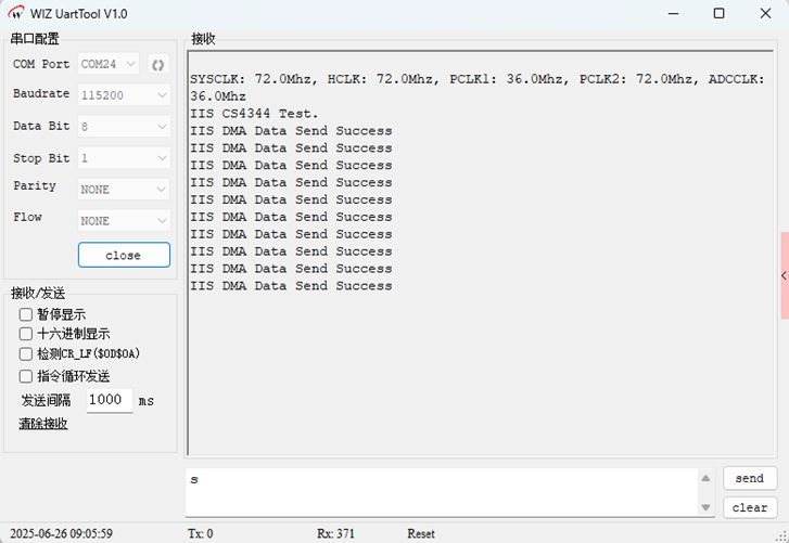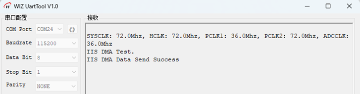 IIS_CS4344例程主要实现了基于W55MH32芯片的I2S音频传输功能。以下是实现过程和结果验证: