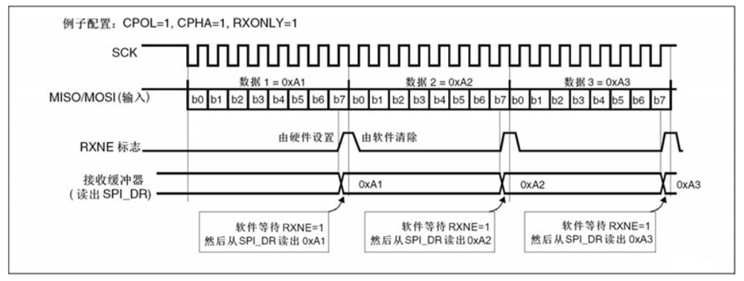 1. 在 SPI_CR2 寄存器中,设置 RXONLY=1;