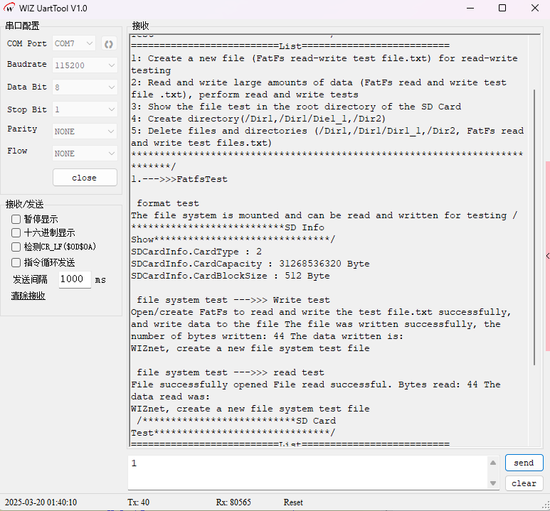 这段代码借助 FATFS 文件系统库,实现了对 SD 卡的文件读写、目录创建与删除、查看根目录等操作,并且提供了一个简单的菜单界面,方便用户进行测试。